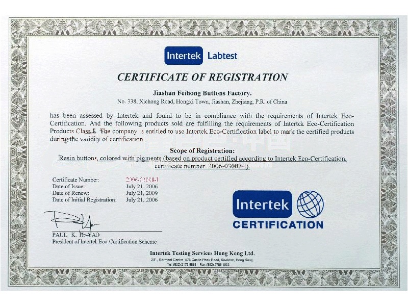 為不斷提高產(chǎn)品品質(zhì)、客戶滿意度,我廠組件專業(yè)的研發(fā)隊伍,產(chǎn)品達到RoHS指令中的測試標準,并于2006年順利通過Intertek測試公司認證,經(jīng)不定期抽檢,復合歐洲市場環(huán)保要求;同時引進日本檢測儀器,對產(chǎn)品進行100%檢驗,以滿足日本和德國市場對金屬鈕扣的要求。