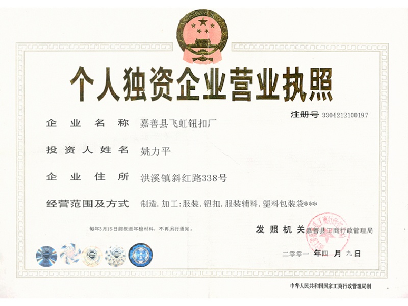 嘉善縣飛虹鈕扣廠,創(chuàng)始于二十世紀八十年代初,坐落于江南水鄉(xiāng)——中國浙江嘉善。主要生產(chǎn)不飽和聚酯系列、天然貝殼系列、ABS尼龍系列、天然木材系列、金屬系列的“日月星”牌鈕扣。